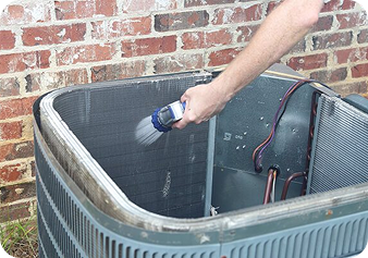 A thorough condenser coil cleaning begins with our technician's visual assessment. During this step, they identify the coil's dirtiness and material to determine the appropriate chemical treatment